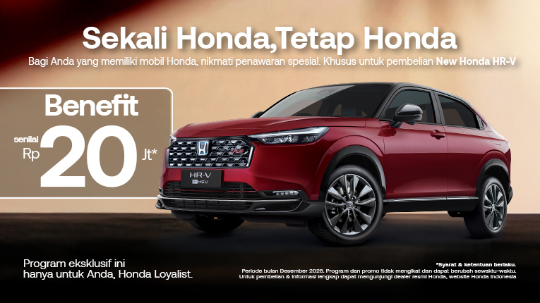 *Periode berlaku hingga 31 Desember 2025. Syarat & ketentuan berlaku. Program dapat berubah sewaktu-waktu tanpa pemberitahuan sebelumnya. Untuk informasi lebih lengkap, silakan kunjungi dealer resmi Honda atau website Honda Indonesia.
